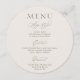 Elevate your table setting with this elegant round wedding menu card, featuring a refined minimalist front and a soft decorative pattern on the reverse side. Designed in a warm ivory tone with delicate script and modern serif typography, this piece blends timeless sophistication with subtle artistic detail.