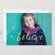 Cartão com fotos de Feriado de Ouro Impresso - Horizontal. Elke Clarke© Envie seus cartões de natal de Natal para seus amigos e família usando este belo e simples cartão com fotos de feriado com a palavra "Acredite" em texto de escrita manual em ouro sobre design. O padrão Bonito de estrela de ouro confetti rodeia o texto e faz um padrão elegante divertido na parte de trás da placa. Substitua a foto de amostra pela sua. Efeito fotográfico impresso de folha de ouro. Outras cores e estilos estão disponíveis em nosso compro em www.zazzle.com/monogramgallery.
