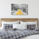 Um belo cenário de arte de parede de árvores de inverno preto e branco com um ouro caminhando.
