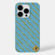 Possui um padrão ondulado e listrado de brilho de ouro em um fundo de turquesa. Personalize com uma inicial num círculo de folha de ouro.