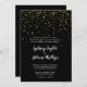 Este Dourado Confetti | O convite formal de casamento preto é perfeito para um casamento simples e clássico. O elegante design apresenta um confete de brilho dourado falso e uma caligrafia minimalista a preto com uma moderna sensação de vaivém.