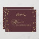Apenas elegância real: "amor" falso roteiro de folha de ouro, com dois corações, falso confete de folha de ouro sobre fundo burgundy/champagne. Use a ferramenta Personalizar para adicionar todas as informações necessárias. Você pode alterar o tamanho, a fonte, a cor e o texto. Para mais, veja a minha Coleção de Casamentos de Confetti Burgundy/Champagne, Dourada.