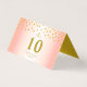 Um esguicho metálico de ouro elegante na placa de Mesa dourada rosa. Cartões rosa de mesa dourada chic.