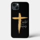 Dourada cruz com Jesus Criada com um caso de iPhone 13 com propósito. Dourado traço de tinta com Jesus suavemente embutido. A caligrafia escreveu "Criado com um propósito" ao lado da cruz do ouro. Mostre a sua fé nesta forte declaração encorajadora.