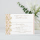 Dourado cartão de resposta de convite para casamento, cor-de-rosa e cor-de-rosa, para felicitar o nosso convite para casamentos tema damasco. Vintage Glam Romântico, com o nome da noiva e do noivo e a data do casamento no verso.