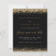 Dourada Glitter Borders Script Wedding Black Save The Date. Um alternativo de 4,5 pol x 5,6 pol com preço inferior. Disponível em um STOCK DE CARTÃO SEMI GLOSS 110 lb, que é a opção padrão (recomendada para convites), OU um STOCK DE PAPEL THINNER SATIN FINISH 80 lb (ideal para gabinetes). Os envelopes são um extra opcional e são ligeiramente maiores que o tamanho da placa. Dourada faux glitter borda as bordas superior e inferior e um script de conjunto elegante para Salvar nossa Data. Personalize facilmente o resto do texto para seus detalhes.