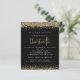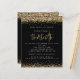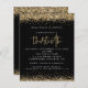 Elegante Dourada Brilhante Convite Preto do Terceiro Partido. Um alternativo MENOR de 4,5" x 5,6", compatível com o orçamento. Disponível em um STOCK de PLACA SEMI GLOSS 110 lb ou um STOCK de PAPEL THINNER SATIN FINISH 80 lb. Os envelopes são um extra opcional. Douradas bordas de confete falso estão no topo e no fundo e também no verso. O trigésimo é feito num estilo moderno manuscrito. Personalize facilmente o resto do texto para você.