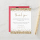 Foto Glitter Dourada Do Orçamento 50º 50º Obrigado. Um alternativo de 4,5 pol x 5,6 pol com preço inferior. Disponível em um STOCK DE CARTÃO SEMI-GLOSS 110 lb, que é a opção padrão (mais espesso para convites), OU um STOCK de PAPEL THINNER FINISH 80 lb FINISH (ideal para gabinetes). Bordas de falso brilho em ouro estão no topo e no fundo na frente e substituam a foto no verso por uma favorita do seu partido. Obrigado, está em um script de escrita manual definido na coordenação do ouro. Personalize facilmente o resto do texto. Você também pode alterar a cor do texto e do plano de fundo por meio da opção personalizar mais, se desejar.
