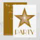 Design moderno com ouro brilhante e brilhante e estrela branca em fundo branco. Convite com um design personalizável para personalizar com seu próprio texto, imagens e ideias. Criado por Jess Perry usando fotografias originais e técnicas digitais.