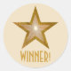 Dourada estrela 'WINNER!' adesivo redondo creme