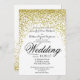 Ouro elegante, moderno e chic imprimiu escaravelhos de confete brilhante, convites para casamento. Este design clássico e sofisticado é perfeito para o casal de competição de tendências e na moda. Personalize com sua própria mensagem na frente, assim como um monograma personalizado inicial no verso. Todas as impressão de fotos.