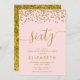 Branca e um brilho de brilho de ouro falso são a forma perfeita de convidar amigos e família para a sua celebração de aniversário.