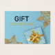 Design de férias de alta qualidade elegante com flocos de neve glamourosos de ouro brilhante e caixa de presentes sobre fundo azul claro. Esta certidão festiva é perfeita para a sua pequena empresa ou para oferecer amigos e família, especialmente para o Natal.