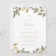 Este convite para o batismo de outono de ouro é perfeito para um batismo ou batizante moderno para bebês. A design apresenta uma fascinante folhagem artística verde e dourada.