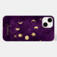 O design celestial atrativo apresenta fases de lua dourada ilustração circular sobre o fundo do céu noturno roxo estrelado de galáxia. Personalizar com nome ou outra mensagem especial.