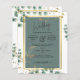 Apresente um toque de elegância e estilo ao seu dia especial com o nosso novo e clássico sábio verde, folhas Eucalyptus e convites para casamentos dourados. Estes convites apresentam uma bela tipografia moderna e um espantoso esquema botânico de cor de ouro verde, perfeito para um olhar clássico, sofisticado e inspirado na natureza. Nossa coleção oferece uma variedade de layouts para escolher, permitindo que você selecione o design perfeito que corresponde ao seu tema de casamento. Você pode até adicionar um código exclusivo de verificação de QR para facilitar a RSVP para seus convidados e confirmar sua presença. A parte traseira dos convites inclui todas as informações necessárias para seus convidados, incluindo os detalhes de RSVP. Oferecemos opções de cartão de papel premium e amigável, para que você possa selecionar a melhor opção que ajustado suas necessidades e orçamento. Nossos cartões premium são impressos em papel de alta qualidade, dando uma aparência luxuosa. Dê uma olhada em toda nossa coleção e encontre o convite perfeito para combinar com seu casamento temático de esmeraldas verde e ouro. Esses convites certamente impressionam seus convidados e dão o tom para seu grande dia. Os corpos espanhóis, guardem as datas, os convites do nikah também estão disponíveis nesta coleção.