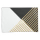 Listras de ouro mínimas sobre a composição geométrica branca e negra, abstrato, blocos de cor de triângulos monocromáticos modernos e tiras de folhas de ouro falsas, design de luxo. Uma simples geometria de linhas, listras e triângulos de fundo abstrato gráfico, que traz um toque especial de estilo e elegância.
