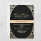 Simples, elegante, luxuoso, rosa de ouro brilhante e doce preto 16 Convite de aniversário para um janto com belos quadros florais art-deco e um roteiro de caligrafia moderno.