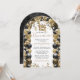 Este elegante convite da Quinceañera apresenta um arco de balão brilhante cintilante em vários tons de ouro e preto com o balão de ouro número 15. A queda de galhardetes e confete em preto e ouro completa a vibração da festa. A parte traseira apresenta fundo cintilante preto. Fácil de personalizar clicando em "Personalizar".