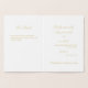 Um convite de casamento tradicional, clássico e elegante do ramo de oliveira, com uma coroa e um roteiro de casamento GOLD FOIL na frente e no verso deste clássico convite dobrado de 5 por 7 polegadas. Dentro os seus detalhes e o texto da resposta, num formato clássico de casamento. Uma boa opção para uma placa dobrada em vez de uma placa plana. Também disponível no tamanho menor de 4 por 5 polegadas.