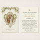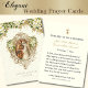 Apresentando uma bela imagem católica tradicional da imagem do betroleta de Maria e José com uma borda decorativa de ouro acentuada com flores brancas e um fundo branco de renda. Uma oração está atrás da noiva e do noivo. Todo texto e fontes podem ser modificados.