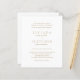 Ouro falso elegante, tudo em um convite de casamento orçamentário com um design simples e mínimo com os nomes da noiva e noiva em uma fonte serif tradicional e o meio e sobrenomes em um roteiro elegante de caligrafia. A parte traseira tem os seus detalhes de convidado, bem como um código QR opcional. Se preferir, você pode remover o código QR na ferramenta de edição de design. Um estilo clássico que é perfeito para um casamento formal.