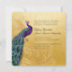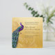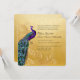 Um convite de casamento rico em ouro elegante, com gráficos adoráveis de ouros floresce, e um pavão roxo e teal colorido. Texto em preto está pronto para personalizar para o seu casamento. Os produtos correspondentes estão disponíveis.