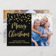 Feliz cartão com fotos de Natal personalizável em efeito de brilho de ouro festivo confessa o padrão com fundo preto. Adicione seu texto personalizado a este cartão para criar uma foto de Natal exclusiva saudando esta temporada de feriados para amigos e familiares. Observe que o efeito de brilho é apenas um efeito fotográfico impresso.