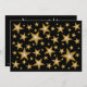 Design moderno com ouro brilhante e brilhante e estrelas brancas sobre fundo preto. Convite com um design personalizável para personalizar com seu próprio texto, imagens e ideias. Criado por Jess Perry usando fotografias originais e técnicas digitais.
