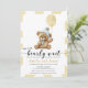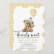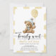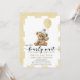Urso azul de ouro aquoso com convite de balão para chá de bebê. cartão com fotos chá de fraldas
