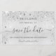 Uma cinta e moda Salve a placa Date para uma festa de aniversário 40th (ou qualquer idade). Um fundo metálico moderno, falso e prateado, decorado com poeira falsa. Personalize e adicione uma data e nome/idade 40. Letras coloridas de cinza. O texto: Salvar a Data é gravado com um script de estilo com letra de tendência grande.