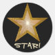 "Dourado" Estrela 'STAR!" adesivo redondo preto