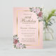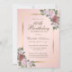 Dourado Floral 60º Convite de Aniversário, rosa-Bl