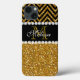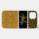 Monograma Dourado Glitter Black Chevron Versão 2. Elke Clarke © 2013. Design original. Disponível em outras combinações de cores na nossa loja Monogramgallery © no Zazzle. GLITTER DOURADO MODERNO (EFEITO FOTOGRÁFICO IMPRESSO) COM PADRÃO CHEVRON NEGRO E DOURADO, MONOGRAMADO COM O SEU NOME, O SEU INICIAL OU MONOGRAMA NUMA FITA NEGRA OU BANDA COM UMA FRONTEIRA DE DIAMANTES BRANCOS IMPRESSOS. TRENDY, CHIC LEGAL DESIGN PARA ELA, A TRENDSETTER, A FASHIONISTA, O ESTILO GLAMOSO DO GLAM