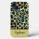 Uma design de tendência de uma impressão leopardo azul e dourada brilhante com nome personalizado. Fácil de personalizar com nome ou texto. Quer você esteja procurando um presente para um amigo ou só queira uma nova capa de telefone para você mesmo, esta é a escolha perfeita.