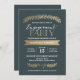 Este convite elegante e festa de noivado apresenta uma folha de ouro brilhante e falsa, louros desenhados à mão, tipografia moderna e um padrão inverso de folha de ouro. Selecione uma forma direta ou papel texturizado para um convite especial extra.
