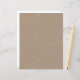 Possui marcas e flechas de folha de ouro em um design de fundo neutro.