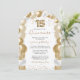 Este elegante convite da Quinceañera apresenta um arco de balão brilhante cintilante em vários tons de branco e ouro com balão de ouro 15. A queda de galhardetes e confete em branco e ouro completa a vibração da festa. A parte traseira apresenta fundo de ouro espumante. Fácil de personalizar clicando em "Personalizar".