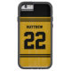 Para o amante esportivo! Caso do iPhone 6, você pode personalizar com o Número e o Nome da Equipe Jersey. Design. Dourado com listras em preto. Se você quiser que haja mudanças no design, envie um e-mail para paula@labellarue.com antes de fazer um pedido e eu criarei um novo modelo.