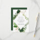 Na moda, cartões elegantes de cerimônias de casamento com os detalhes do seu casamento cercados por uma moldura geométrica de folhas de monstera e folha de ouro falso e folhagem verde. Personalize o cartão adicionando informações importantes, como detalhes de reserva de alojamento, etc.