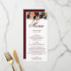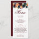 Este cardápio é perfeito para deixar seus convidados saberem o que é para jantar ou almoçar. Dourado, burgundy wine marsala red, flores azuis marinhos rosas florais decoram este adorável menu de casamento.