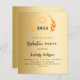 Um fundo com aspecto de ouro. Uma coroa de louros clássica e um boné de formatura. Personalize e adicione o ano, o nome e os detalhes. Texto preto. 1 folha = 1 convite impresso de borda a borda.