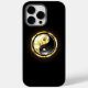 Símbolo de joias, ouro e yin yang preto em um fundo preto. Dourado yin yang.