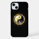 Símbolo de joias, ouro e yin yang preto em um fundo preto. Dourado yin yang.