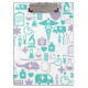 A prancheta do tema do médico projetada com um teste padrão gráfico que tenha símbolos médicos e equipamento por todo o lado na parte dianteira com espaço colorido do vazio na parte traseira você pode personalizar com o nome de um doutor, de um hospital, ou de um nome da clínica para fazer a sua prancheta seus próprios.