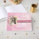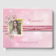 Lindo livro de visitas com fundo de luzes bokeh rosa, laço rosa, diamantes, safiras rosa e pérolas. Adicione sua foto favorita em uma moldura dourada. Personalize com seu nome e data. Perfeito para Bat Mitzvah e Quinceanera. Lindo souvenir para uma adolescente especial.
