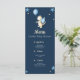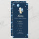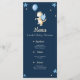 Cartões de cardápio muito bonitos para a celebração do seu Chá de fraldas. O design simples, não muito cheio de imagens, faz com que seja relaxante olhar para ele. A ilustração tem um pequeno dragão com asas azuis segurando um balão azul. Outros sotaques são estrelas e pontos. Personalize todo o texto do menu com suas próprias informações. Muito fácil de fazer! Ilustrada e projetada por Patricia Alvarez.