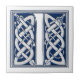 Esta azulejo apresenta uma bela e decorativa letra celta emboscada iluminada com cabeças de dragão de cinza sobre um fundo azul escuro e veludo.
