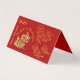 Corte de papel chinês ouro de um Dragão + nuvens chinesas não-suspeitas (gráfico de linha) ouros + quadros vermelhos escuros chineses nos quatro cantos. Design sobre cartão de visita com fundo vermelho dobrado horizontal + textos: 2024 e O Ano do Dragão. Perfeito para o Ano Novo Chinês do Dragão 2024.