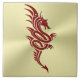 Dragão vermelho estilo leste com um olhar gravado sobre um fundo brilhante e radial de ouro